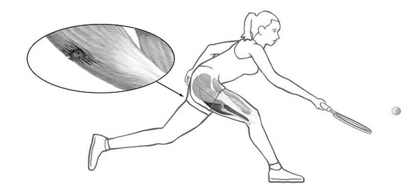 Een scheuring of verrekking van de hamstrings – de spieren aan de achterkant van de bovenbenen – is de meest voorkomende blessure van het bovenbeen bij tennissers. Een hinderlijke blessure, waarvoor rust en een geleidelijke revalidatie nodig zijn.