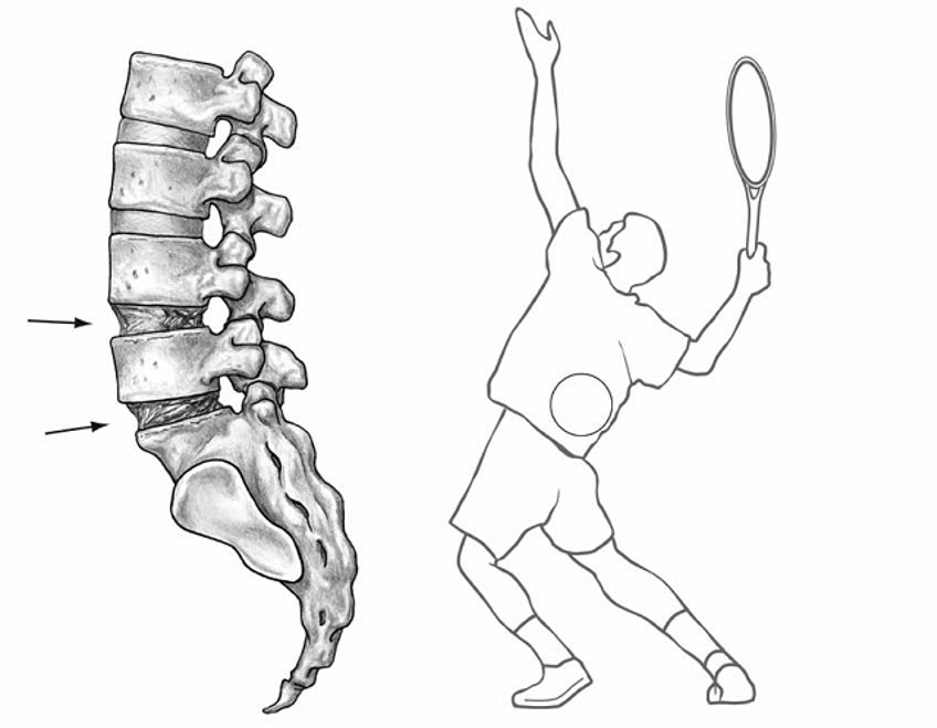 Lage rugklachten kunnen ontstaan door een slechte houding, het niet goed functioneren van bepaalde spieren (disbalans, verkorte of verzwakte spieren), overbelasting, instabiliteit en problemen met de wervels onder in de rug. Voor tennissers kan vooral de gecombineerde draaiing en overstrekking van de rug tijdens de service problemen geven.