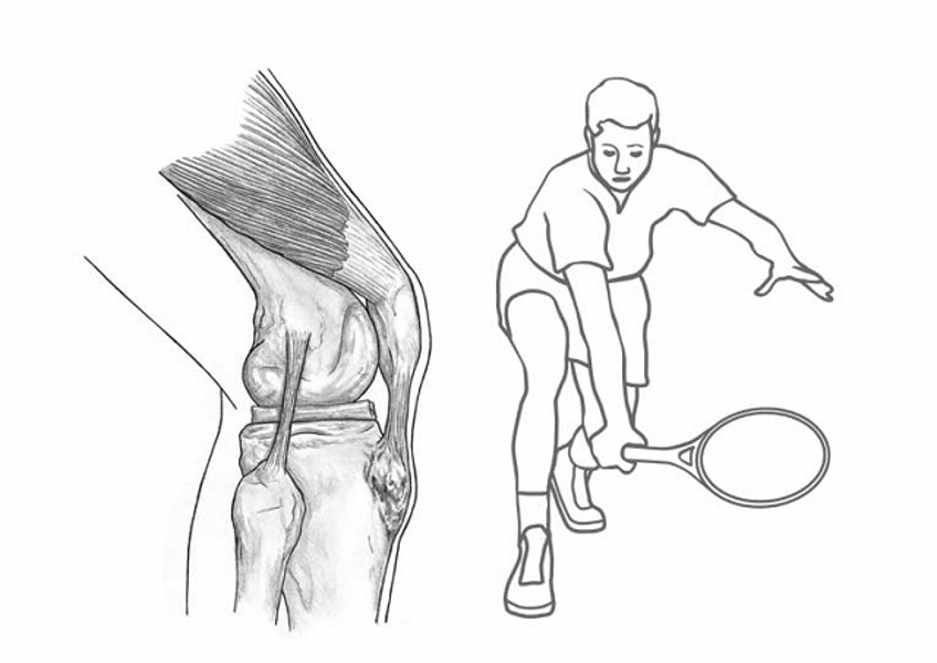 Bij Osgood Schlatter voel je pijn net onder je knie, aan de voorkant van het scheenbeen. Vooral rennen en springen kunnen pijnlijk zijn, maar ook fietsen, traplopen, diepe kniebuigingen en knielen kunnen pijn geven. Tijdens het tennissen zijn lage volleys, links-rechtsoefeningen en serveren pijnlijk. Soms gaat de blessure ook gepaard met zwelling van de ‘bobbel’ onder de knie.