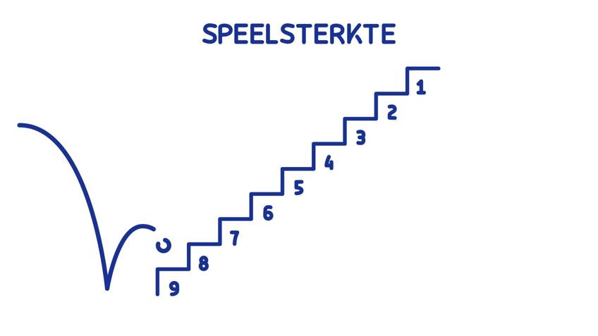 Je speelsterkte is een heel getal van 1 t/m 9. Een beginnende speler krijgt een 9. Een professionele speler een 1. Dit getal wordt gebruikt voor de opstelling in de competitie en het inschrijven voor toernooien. Op die manier speel je tegen gelijkwaardige tegenstanders. Je speelsterkte wordt aan het einde van elk seizoen bepaald aan de hand van je rating. Je nieuwe speelsterkte wordt jaarlijks in november gecommuniceerd, maar treedt pas het volgende jaar in werking en geldt het volledige jaar van januari tot december. Voor meer informatie over de jaarlijkse speelsterktebepaling, klik hier.