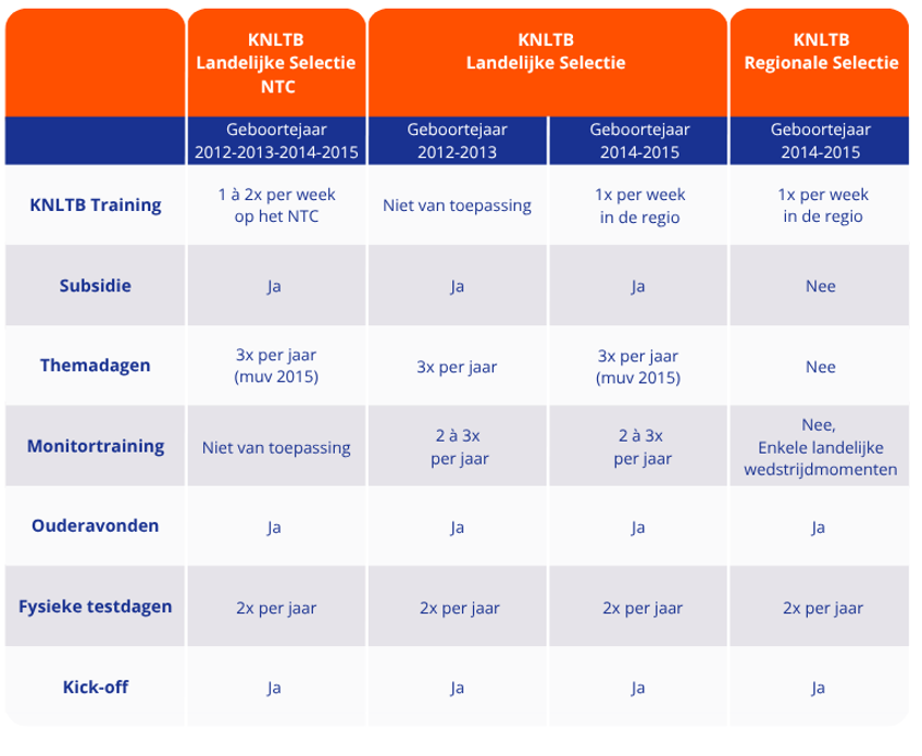 Daarnaast wordt er een KNLTB Regionale selectie t/m 12 jaar met potentie voor nationaal niveau gevormd. Ook zij komen in aanmerking voor een wekelijkse regionale training.