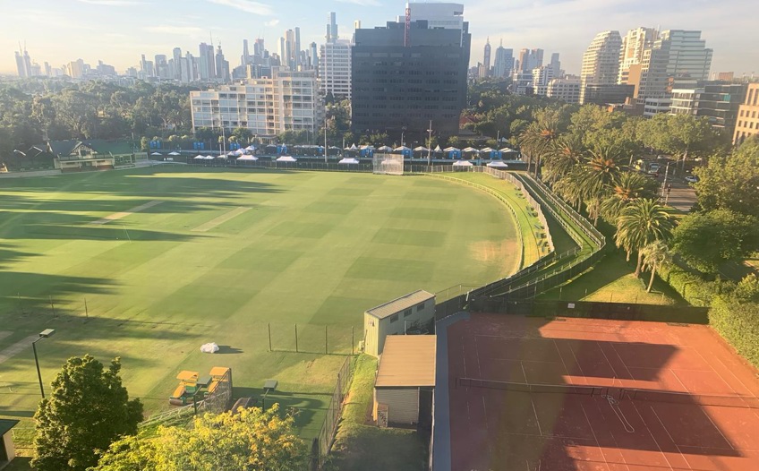 Voordat Haase zijn eerstvolgende ATP-toernooi in Melbourne kan aanvangen, zit hij nog een paar dagen vast op zijn hotelkamer. Vanuit zijn raam heeft hij twee gravelbanen, een cricketveld en het trainingscomplex in zijn vizier. Het blauwe hardcourt is op het oog zo dichtbij, maar de komende dagen nog even ver weg.