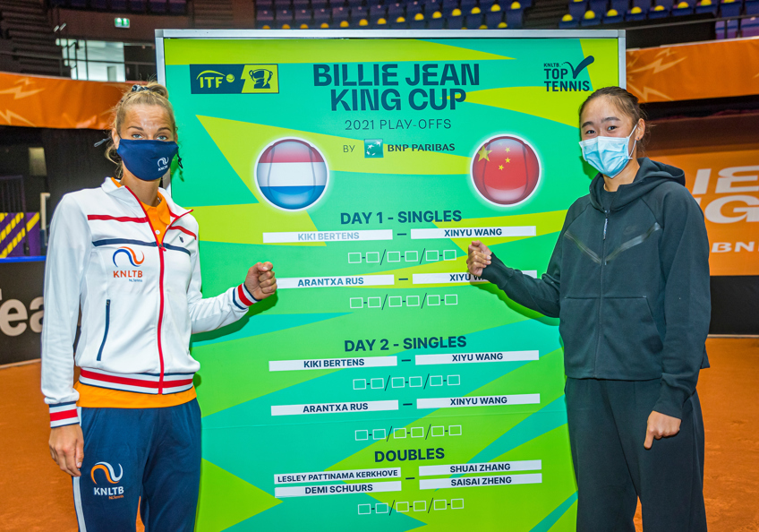 De loting voor het Billie Jean King Cup play-offduel tussen Nederland en China in de Maaspoort in ’s-Hertogenbosch heeft een verrassing opgeleverd. De Chinese captain Shuo Liu laat de 19-jarige Xinyu Wang en de twintigjarige Xiyu Wang debuteren. Paul Haarhuis koos voor vaste krachten Kiki Bertens en Arantxa Rus.
