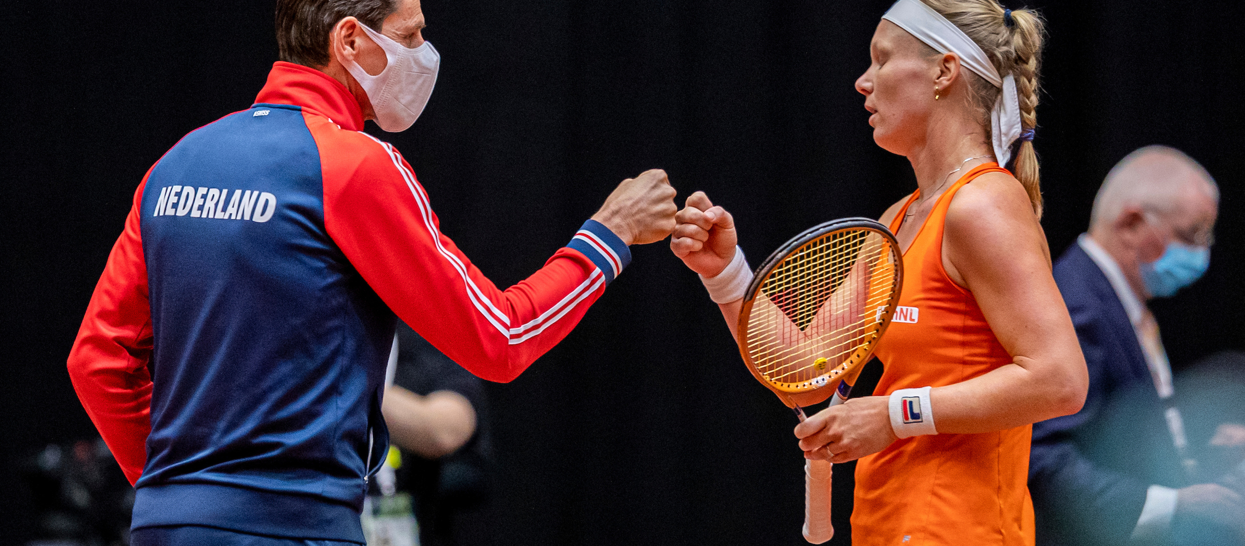 Zaterdag wordt de ontmoeting tussen Nederland en China hervat met een duel tussen de kopvrouwen Bertens en Wang. ‘Ik verwacht goed tennis en vuurwerk in zowel de derde als vierde enkelpartij’, besloot Haarhuis de persconferentie.