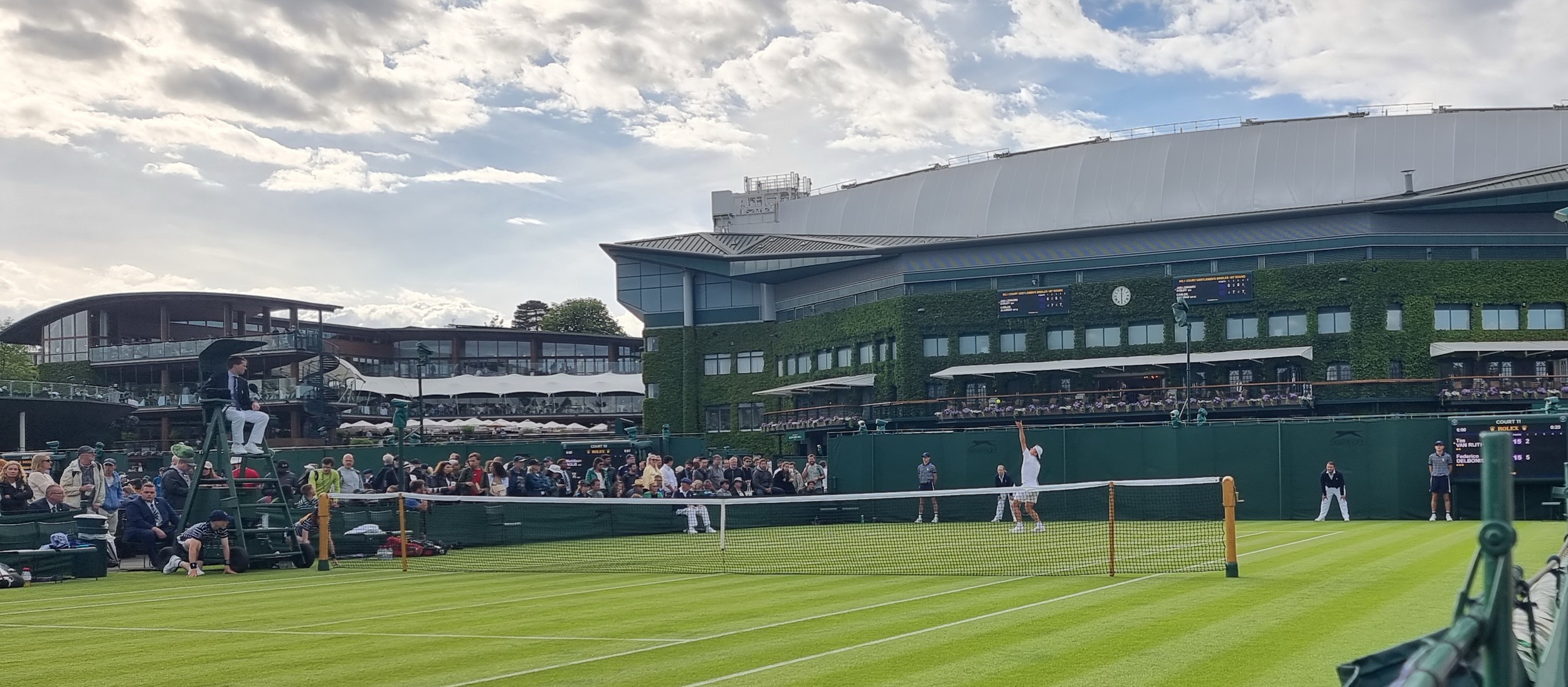 Van Rijthoven was onder de indruk van de ambiance. ‘Het was zo mooi om hier te spelen. Aan één kant van de baan keek je tegen het Centre Court aan. Dat was zo’n magisch mooi beeld. Misschien was ik daar ook wel een beetje door afgeleid in de eerste set, haha.’