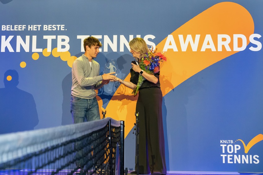 Tijdens een feestelijk diner op het centre court van de NK Tennis op het NTC in Amstelveen zijn de jaarlijkse KNLTB Tennis Awards uitgereikt. Tallon Griekspoor, Arantxa Rus en Wesley Koolhof mochten voor hun prestaties een award in ontvangst nemen. De 16-jarige Mees Röttgering kreeg uit handen van jurylid Kristie Boogert de aanmoedigingsprijs.