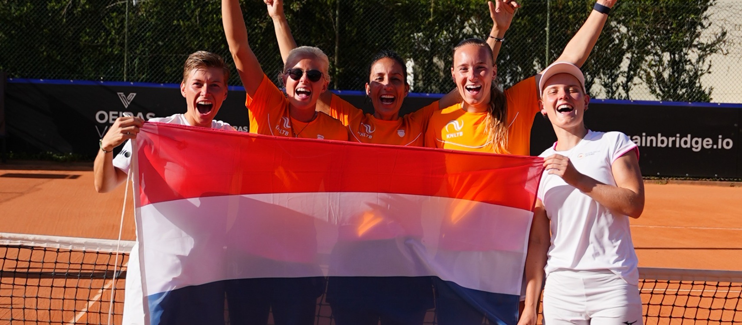 Het Nederlandse team plaatste zich in april in Portugal voor de Play-offs na overtuigende winst in de zone Groep 1 Europa/Afrika. De winnaar van het duel in november mag zich volgend jaar via de Billie Jean King Cup Qualifiers proberen te plaatsen voor de Finals. De verliezer speelt verder in de zone Groep I.
