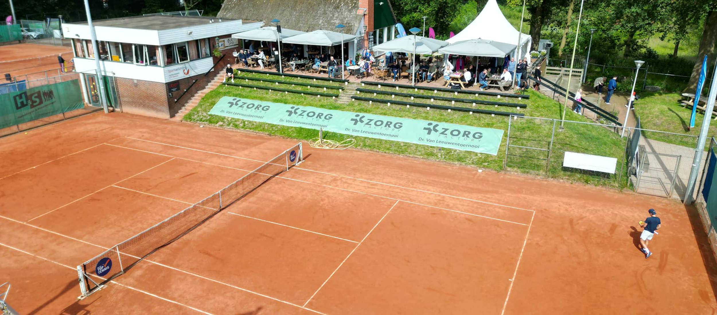 “We hadden er alles aan gedaan zondag, maar het lukte echt niet om die heren ook nog te laten spelen. Helaas. We hadden het al uitgesteld en op het moment dat we dachten dat het eindelijk kon –de spelers stonden klaar- kwam het alweer met bakken uit de lucht”, blikt Kees van Oostenrijk terug op de finaledag, die dus in het water viel. Tot dat moment had de 69ste editie van het Zorgfactory Dr. Van Leeuwen nauwelijks hinder ondervonden van het weer. “Op woensdag hadden we wat oponthoud, maar van donderdag tot en met zaterdag hebben we weinig tot geen regen gehad”, constateerde de toernooidirecteur, die voor de finale op maandag nog wel wat publiek had weten te mobiliseren, onder meer in de vorm van een paar schoolklassen.
