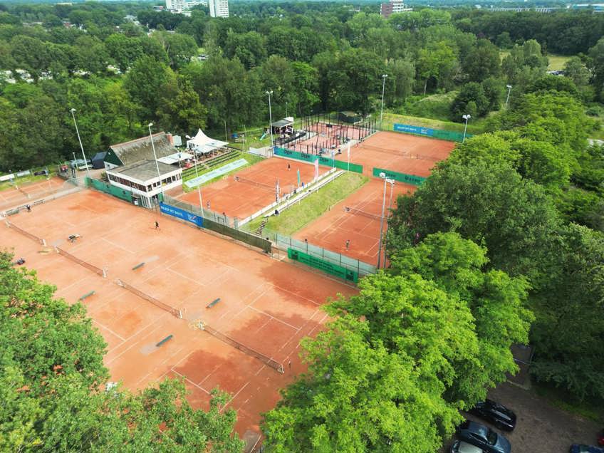 AFBEELDINGEN: Het tennispark van LTC Emmen vanuit de lucht gefotografeerd. Credits: Danny Wiggers.