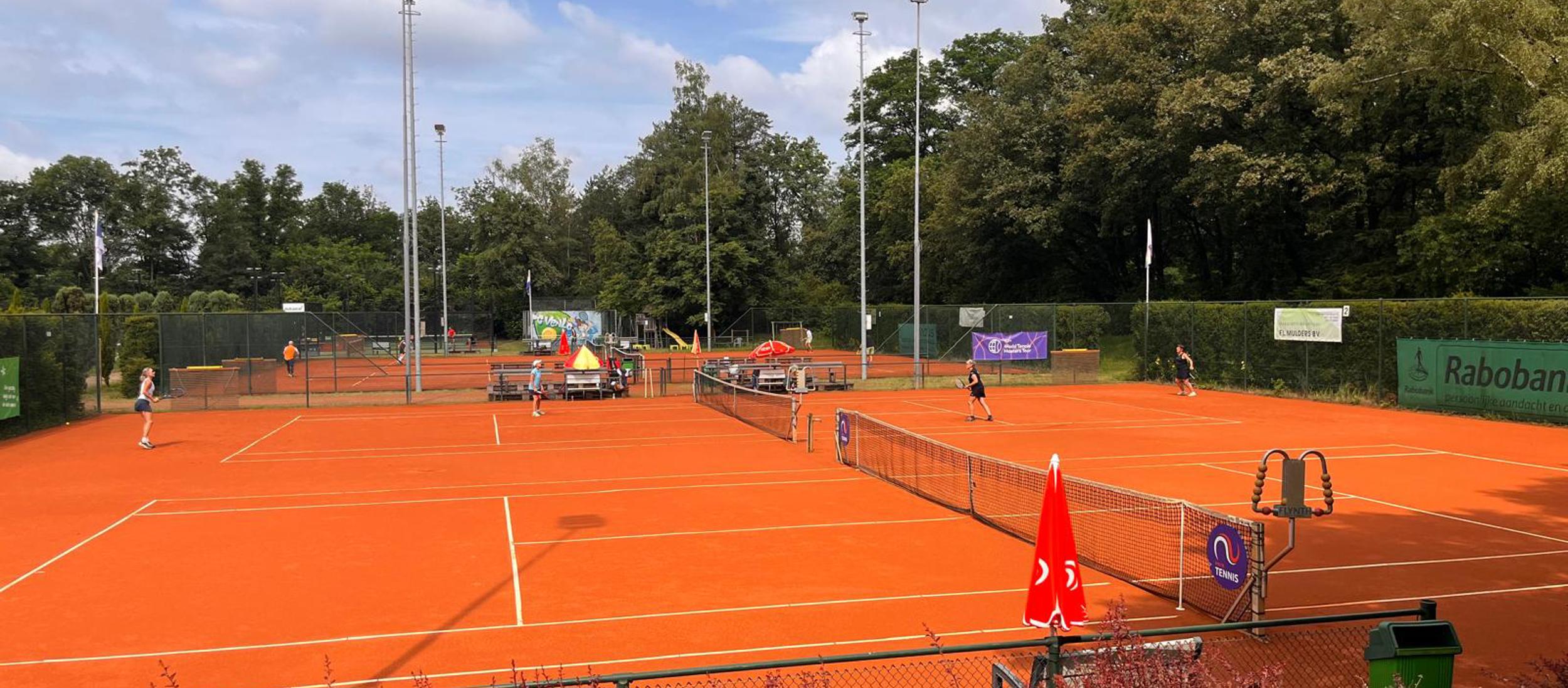 Afbeelding boven: Spelers in actie op het tennispark van TC Venlo.