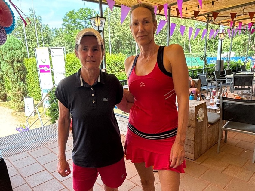 De 'dames 60+' kende ook een dubbelspel. Dat werd gewonnen door Carole de Bruin en de Duitse Susanne Veismann (zie foto onder). De Duitse schreef ook het enkelspel op haar naam. Ze won het duel tegen De Bruin met 6-3, 6-1. De Bruin won zelf met 6-0, 6-4 van Petra van den Akker-Wessels.