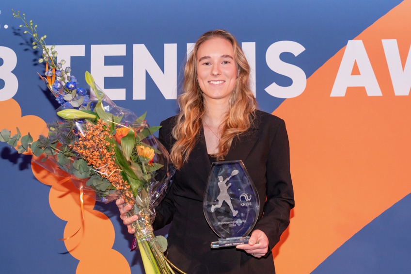 Anouk Koevermans werd de Aanmoedigingsprijs toebedeeld. De twintigjarige speelster maakte afgelopen jaar haar debuut voor het TeamNL Billie Jean King Cupteam. Op de tour wist Koevermans twee ITF-titels te pakken. Ze verbeterde haar positie op de wereldranglijst met maar lief 240 plaatsen en eindigde het jaar op de 191ste plek.