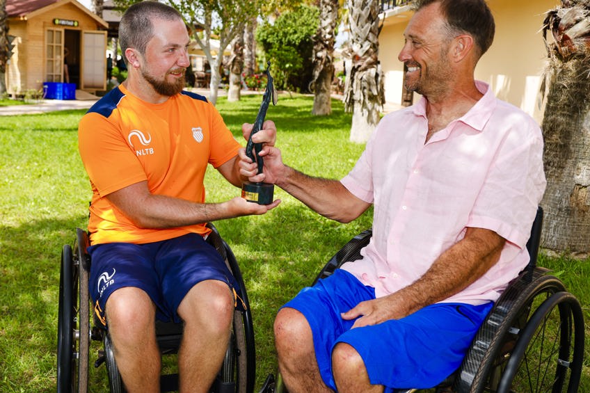 Schröder kreeg de ITF World Champions Award overhandigd door de Amerikaan David Wagner (zie FOTO hierboven rechts), in 2017 de eerste winnaar bij de quads. Onze landgenoot is de vierde winnaar van deze prijs. Dylan Alcott ontving de onderscheiding in 2018, 2019 en 2021 en Niels Vink in 2022 en 2023.