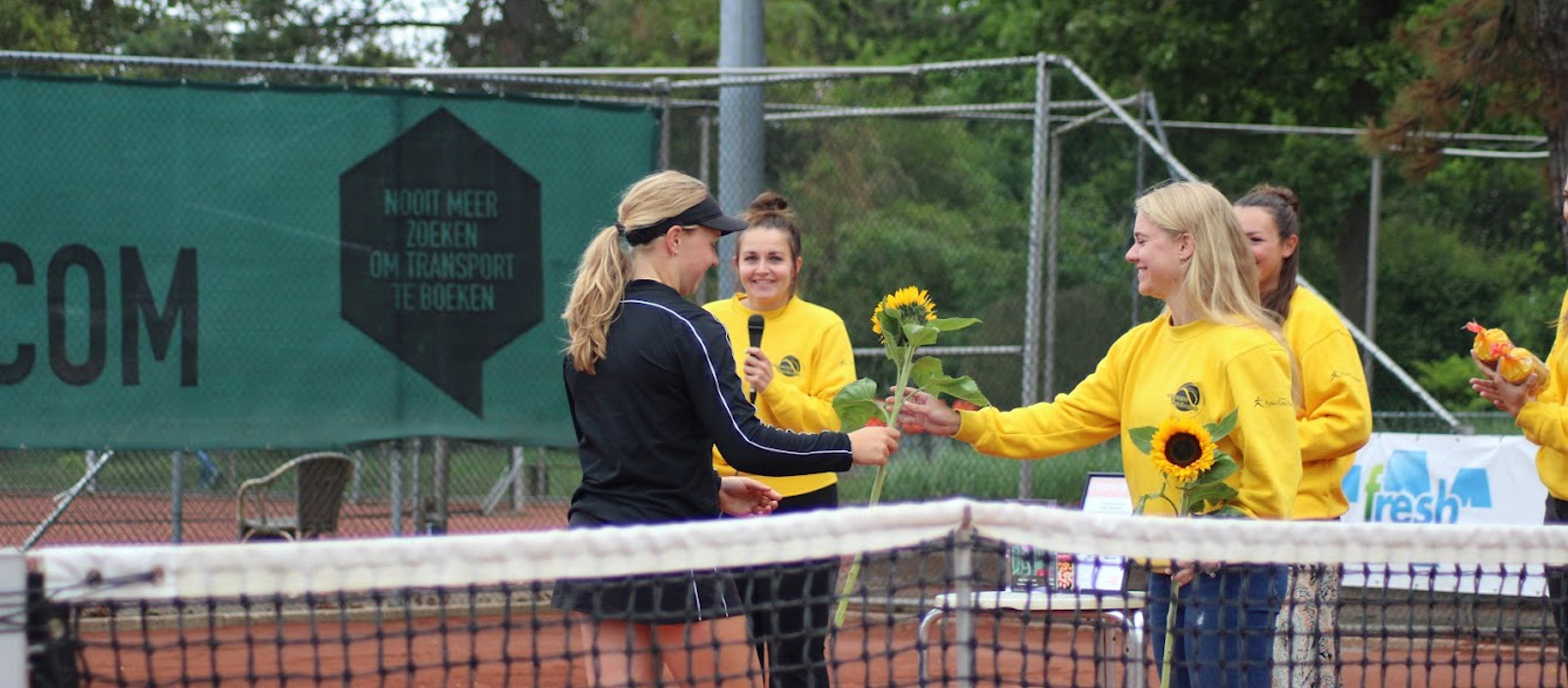 Twee jonge vrouwen die jaarlijks achter de 'hospitality desk' zitten, twijfelden of ze dit jaar nog van betekenis konden zijn voor het toernooi. Tijdens hun studie was het geen probleem om in de zomervakantie dagelijks te helpen, maar inmiddels in het werkende leven was dat niet zo eenvoudig meer. Toch zijn ze er dit jaar weer bij. Niet de hele week, maar op twee dagen zitten ze er weer om vragen te beantwoorden en aan allerlei verzoeken van spelers en coaches te voldoen. Denk aan het reserveren van een trainingsbaan op de club of hulp bij het zoeken naar een hotel -in de buurt graag- om te overnachten.