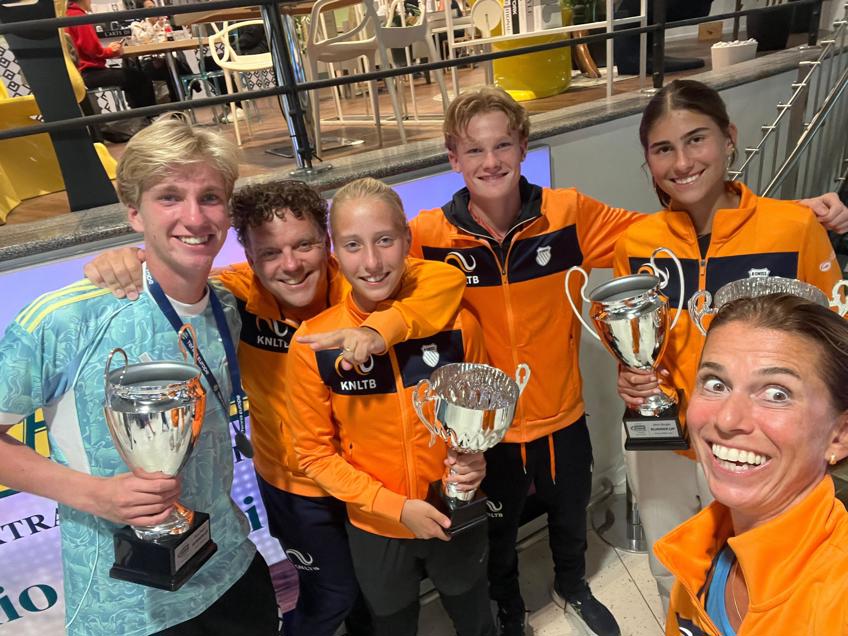 Er heerste zaterdagavond een uitgelaten sfeer in het Nederlandse kamp. De teleurstelling over het verlies van de finales had plaatsgemaakt voor trots op en euforie over een geweldige week voor het vaderlandse tennis. Niet eerder in de geschiedenis van de EJK (sinds 1976) waren er Nederlandse finaleplaatsen op drie verschillende onderdelen in één leeftijdscategorie. “We zijn hier enorm gelukkig mee en trots op. Dit zijn de weken waar het voor doen. We hadden wel verwacht dat ze ver zouden kunnen komen, maar je weet ook dat er heel veel concurrentie is op dit toernooi. Antonia en Stan hebben een paar heel zware potten overleefd op weg naar hun finales”, kijkt KNLTB Jeugdcoach Martijn Voorbraak terug.