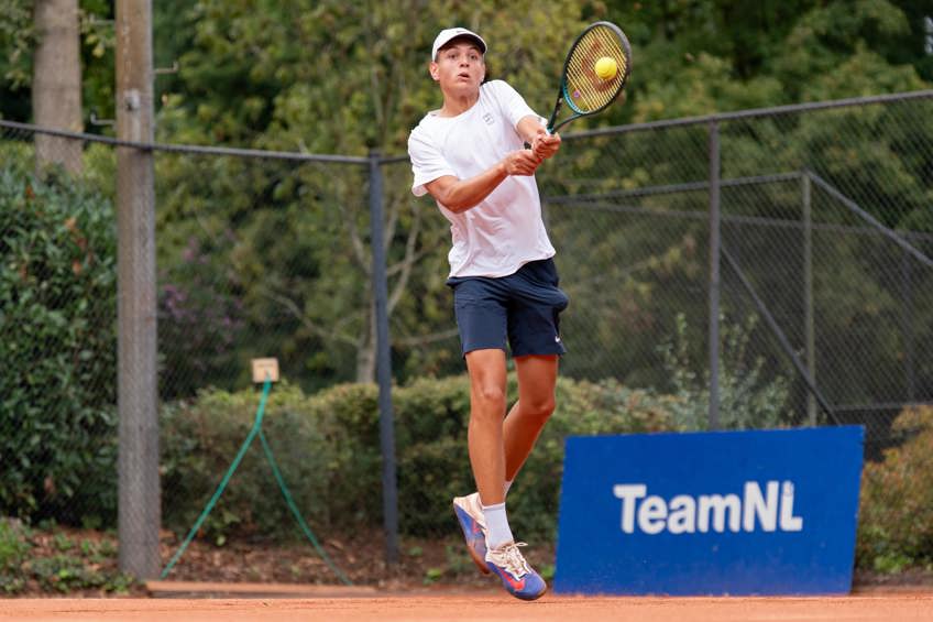 ‘Ik ben de KNLTB heel dankbaar voor de steun die ik krijg. De bond helpt financieel en regelt tijdens toernooien in het buitenland ook veel voor mij. Bij de tennisschool traint veel talentvolle jeugd dus ik kan vaak met leeftijdsgenoten sparren. Sander (Hommel, red.) vind ik echt een topcoach. Hij doet het op zijn eigen manier en kan soms best hard zijn, maar dat is goed voor me. We werken nu veel aan mijn forehand, zodat ik deze met meer spin en diepte kan slaan. Je kunt mij typeren als een agressieve baseliner, die ook wel naar het net gaat. Al moet ik wel wat zakelijker worden met mijn volleys, die wil ik nog wel eens te vaak kort wegleggen, haha.’