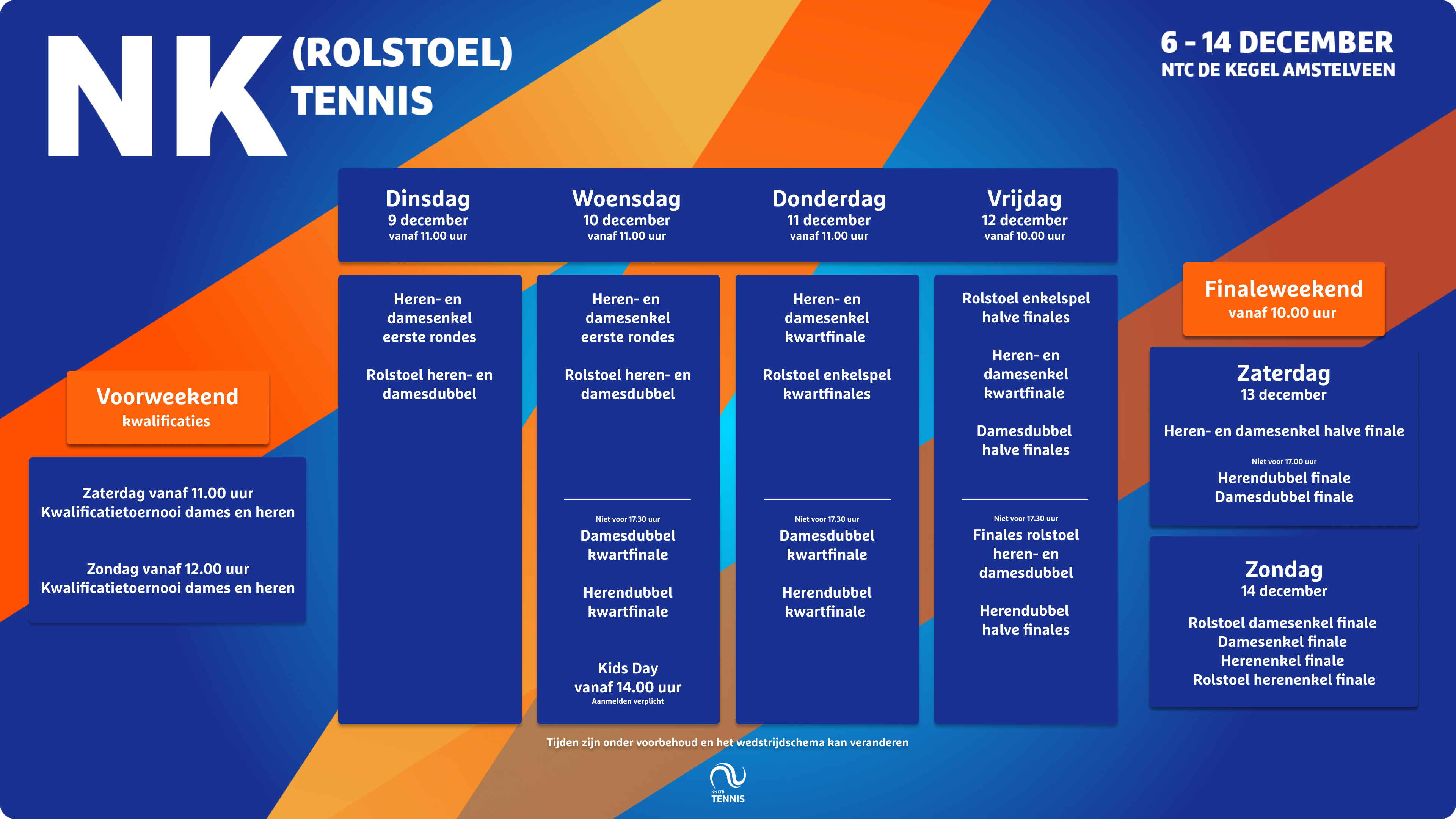 Van zaterdag 6 tot en met zondag 14 december komt de Nederlandse (rolstoeltennis)top in actie tijdens de Nationale Kampioenschappen Tennis op het NTC in Amstelveen. Wie wordt er dit jaar Nederlands Kampioen?